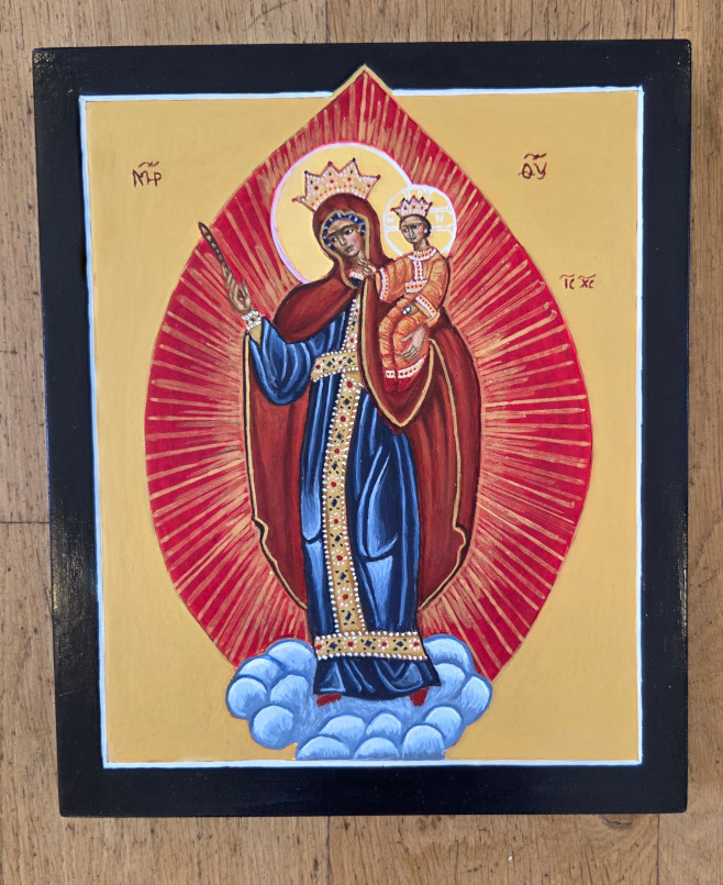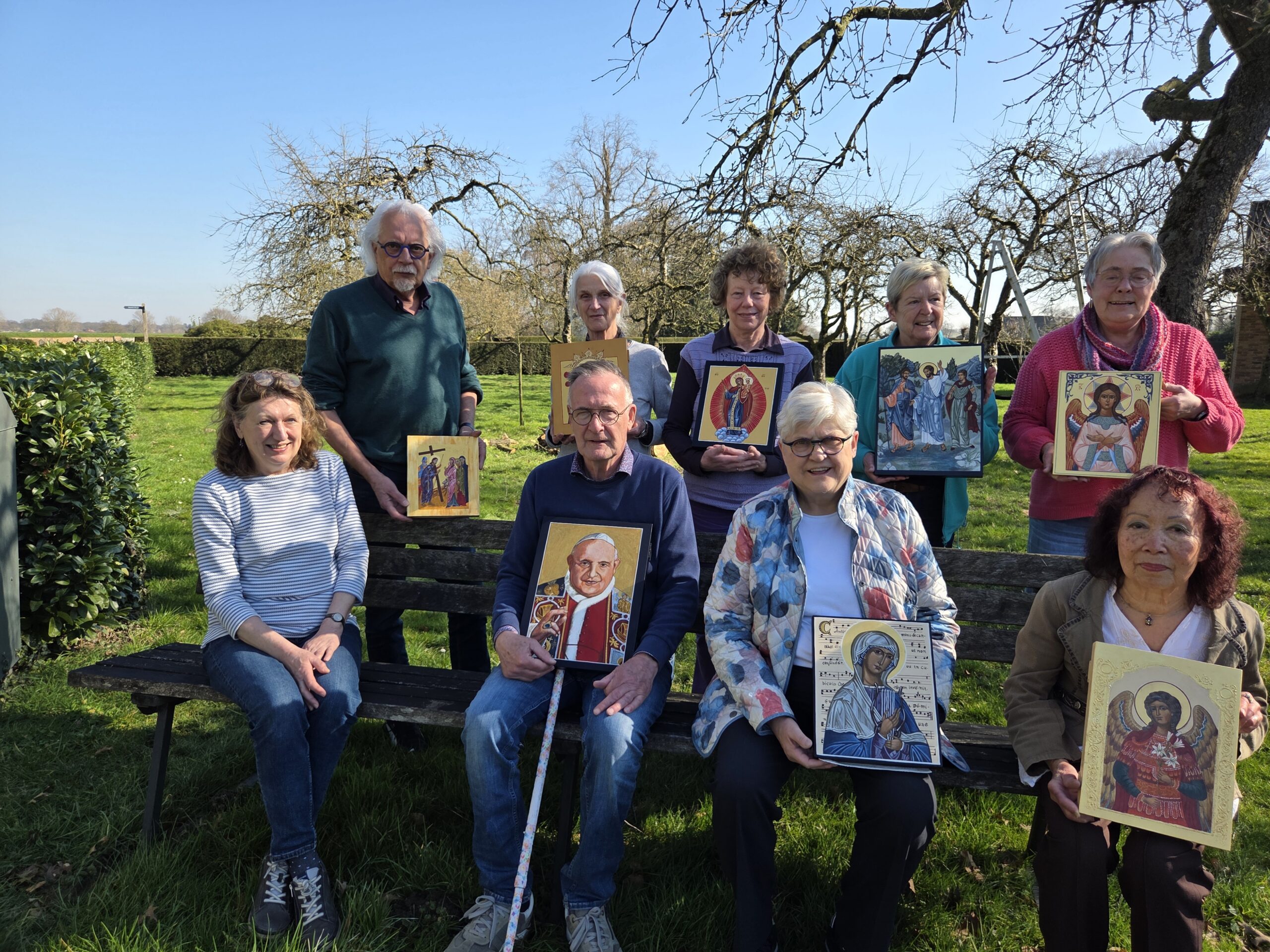 Vandaag hebben de cursisten de laatste hand gelegd aan hun icoon. De resultaten ziet u hieronder. Traditiegetrouw hebben we een ook groepsfoto gemaakt.