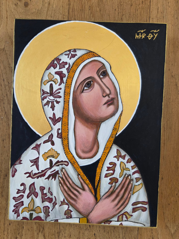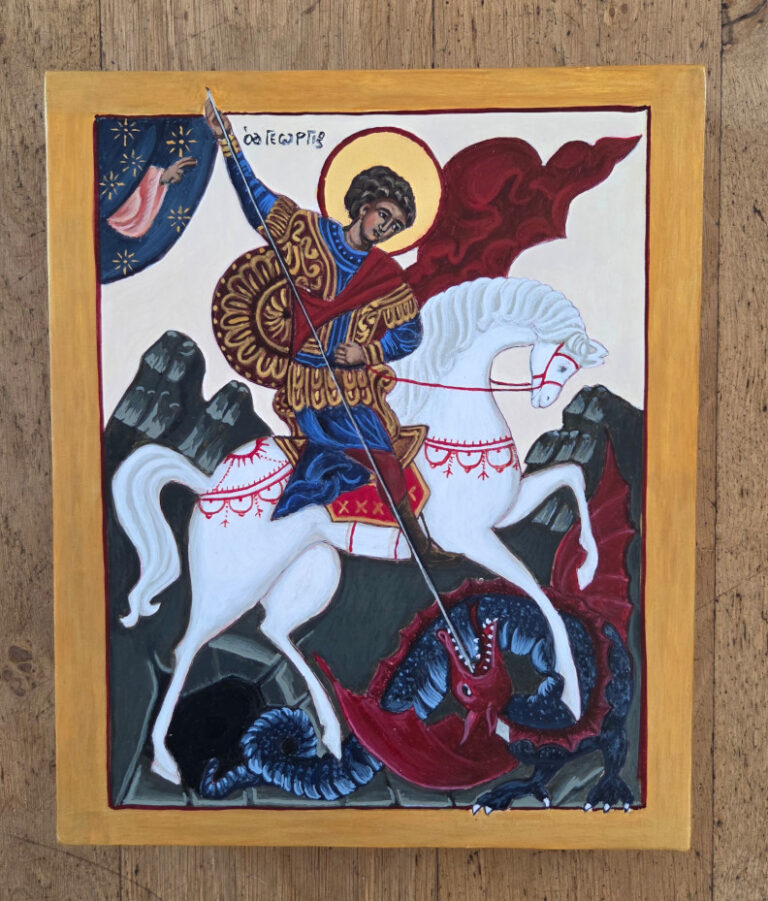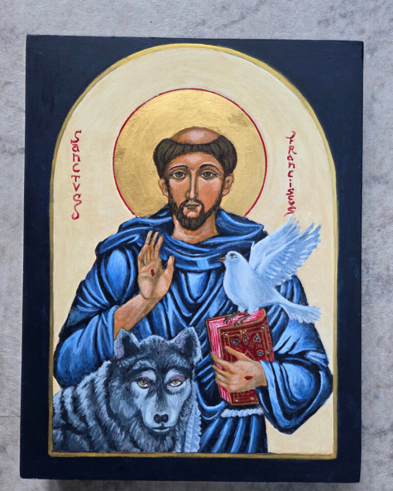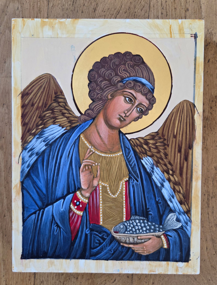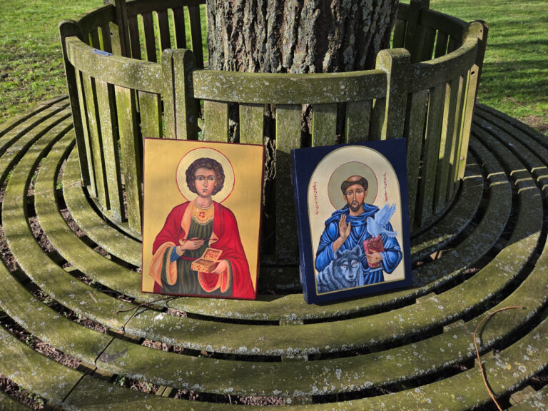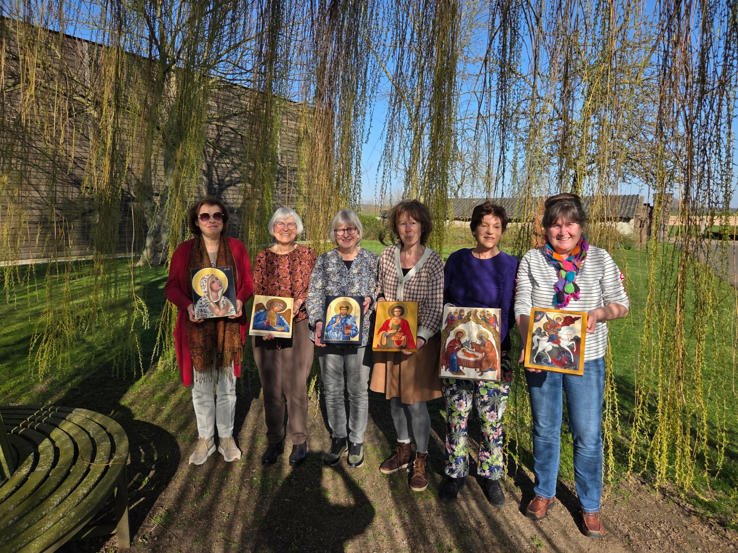 De laatste les van de cursus op donderdagen in het Poortgebouw van Klooster Sint Agatha zit erop. De iconen zijn (nagenoeg) klaar. Er zijn iconen geschilderd van heel diverse heiligen, zoals Panteleimon, Joris, Maria, de Aartsengel Gabriel, Franciscus van Assisi.