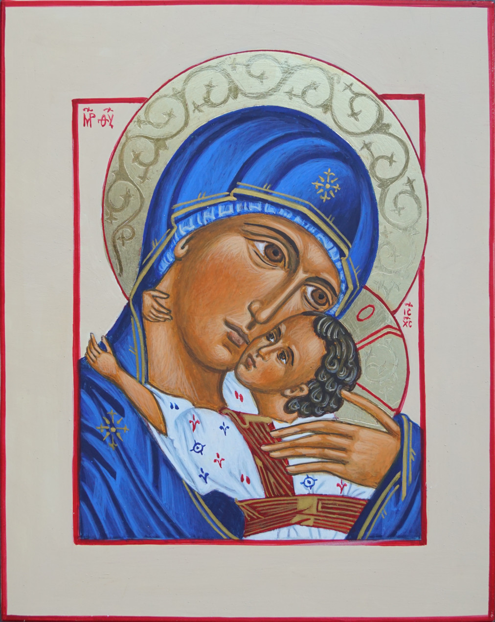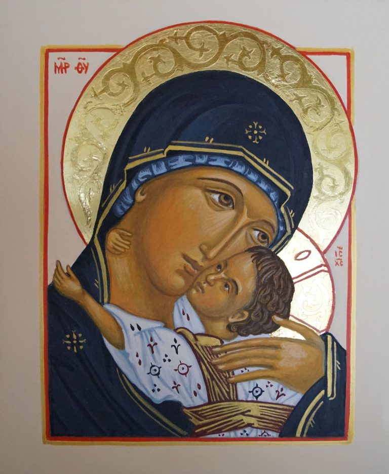 Moeder GodsNaar een icoon uit het holenklooster van Pskov, 1542. Deze afbeelding heb ik al een aantal malen meer mogen maken, ook onlangs nog, in verschillende formaten.